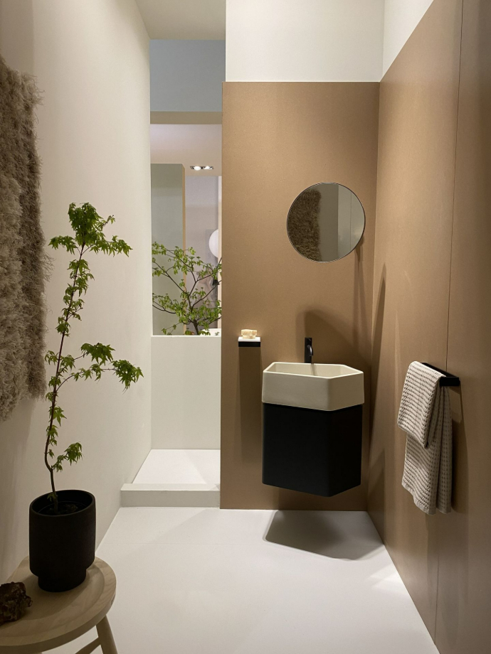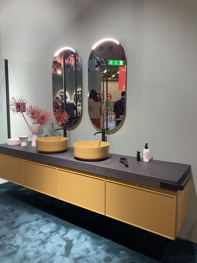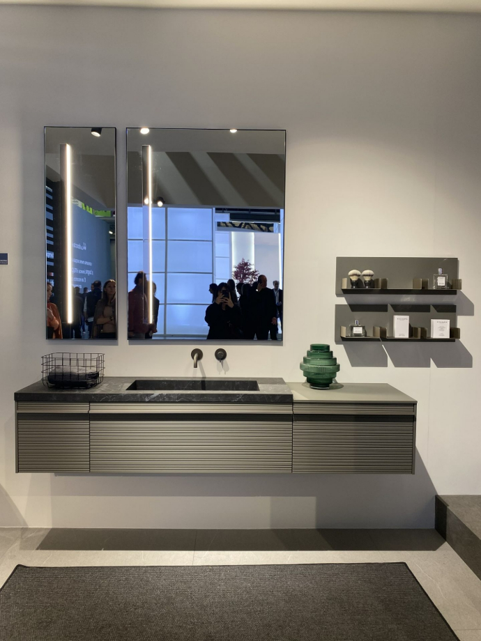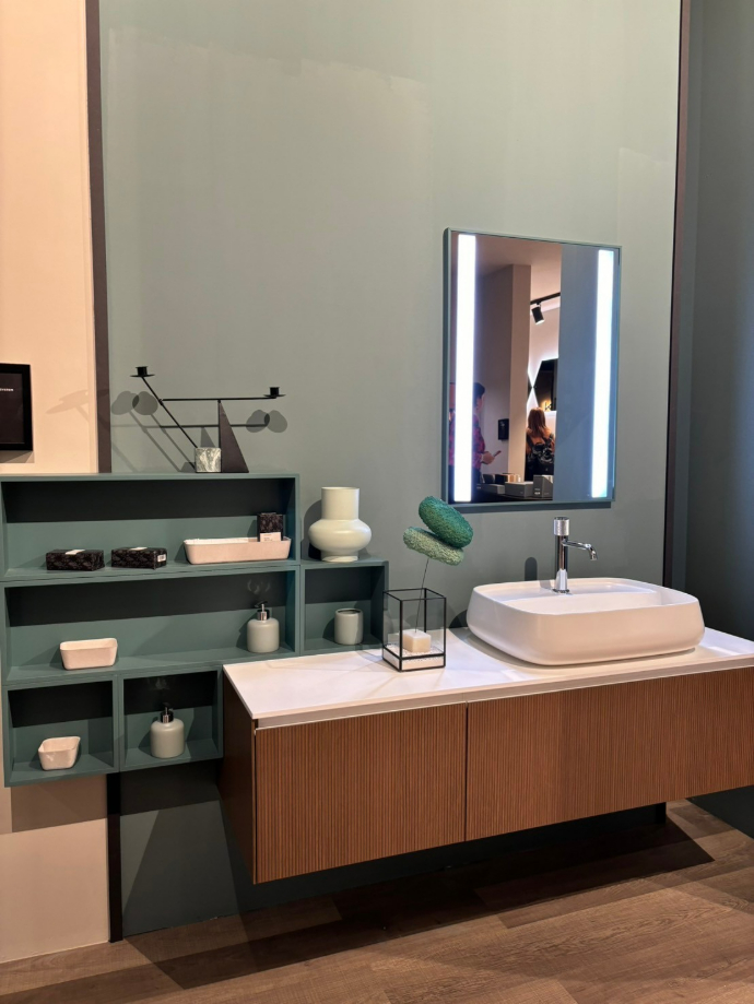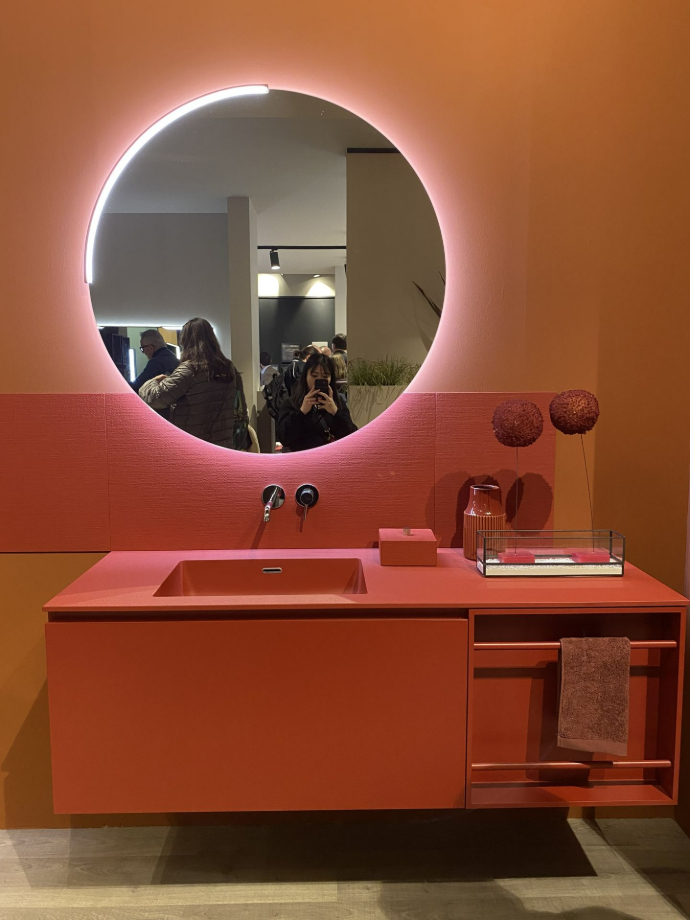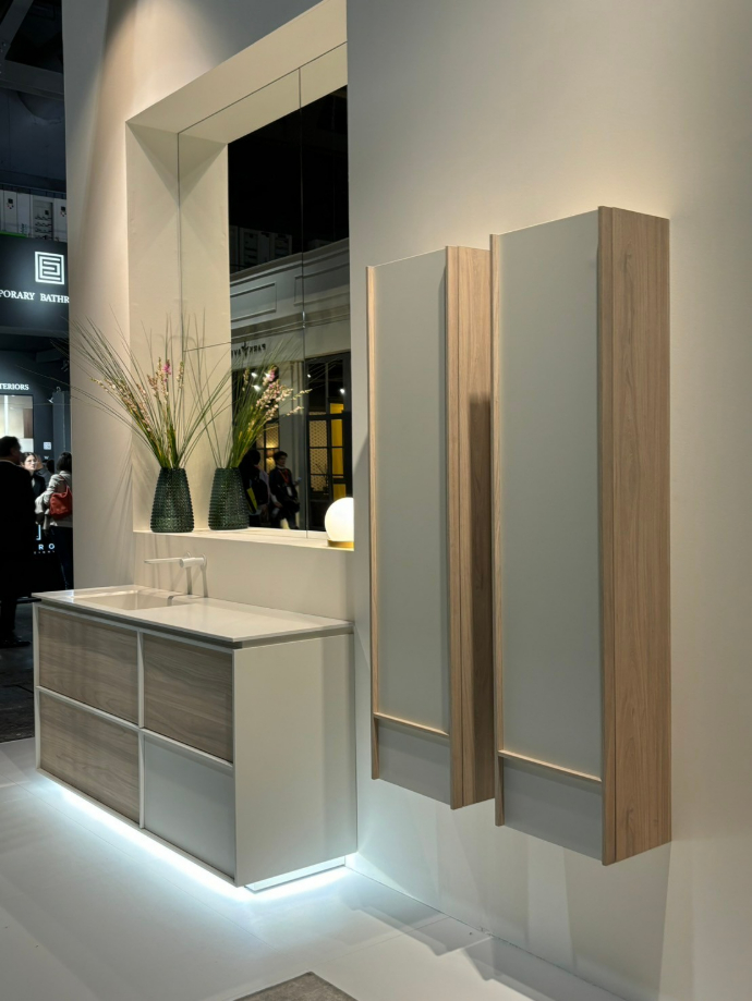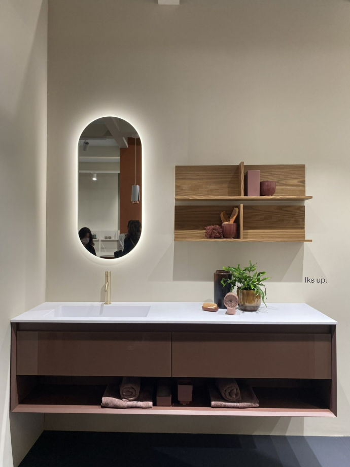 過往我們對浴櫃的印象,往往是白色、木紋、低調實用。但在這裡,設計師們用非常大膽的方式,重新定義了「浴櫃」在空間中的角色——它不再只是功能性的配角,而是整體浴室氛圍的主角之一。