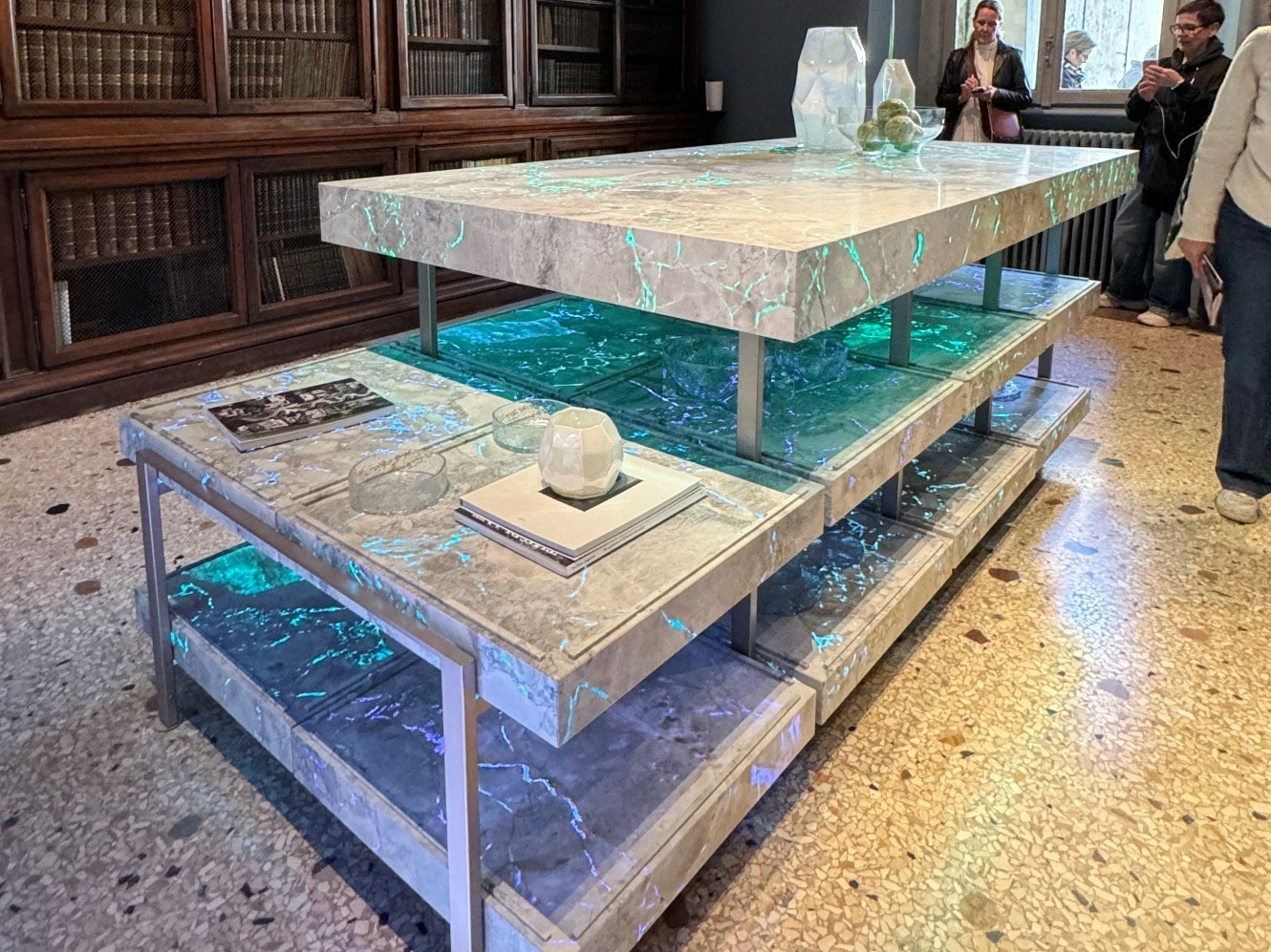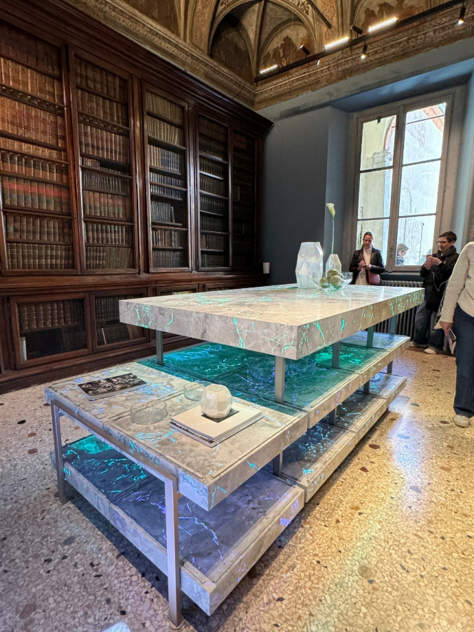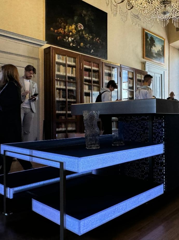 此次展場以材質、光影與結構的多元表現為核心,從經典的石材延伸到玻璃、金屬與燈光設計,將空間的功能與藝術氛圍巧妙融合。每件作品不僅是家具,更是藝術裝置,展現設計師對生活美學的細膩思考與無限想像。