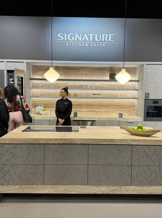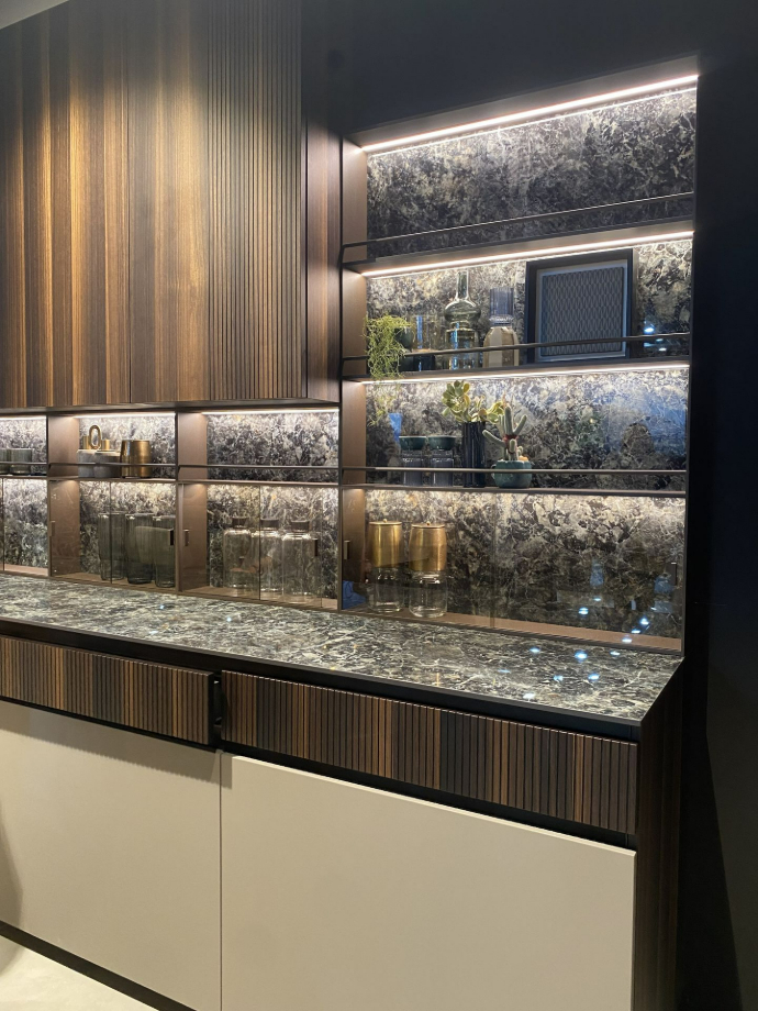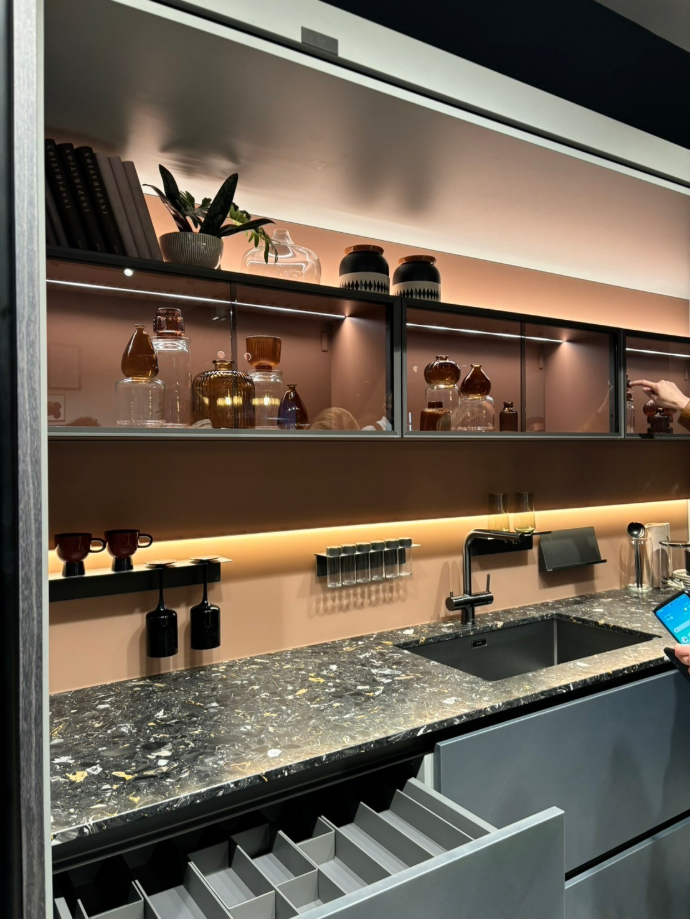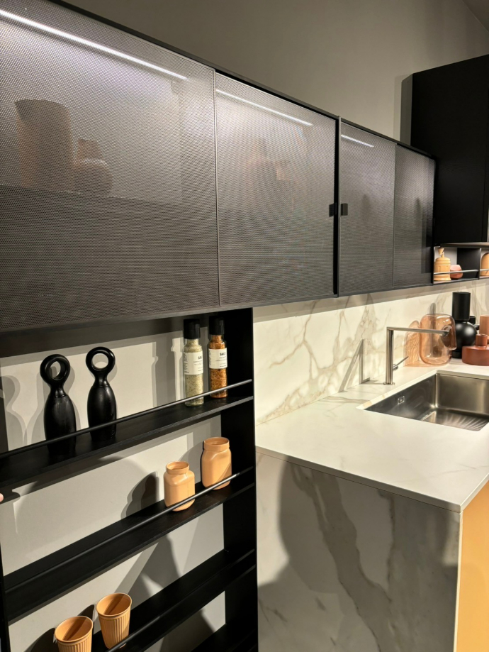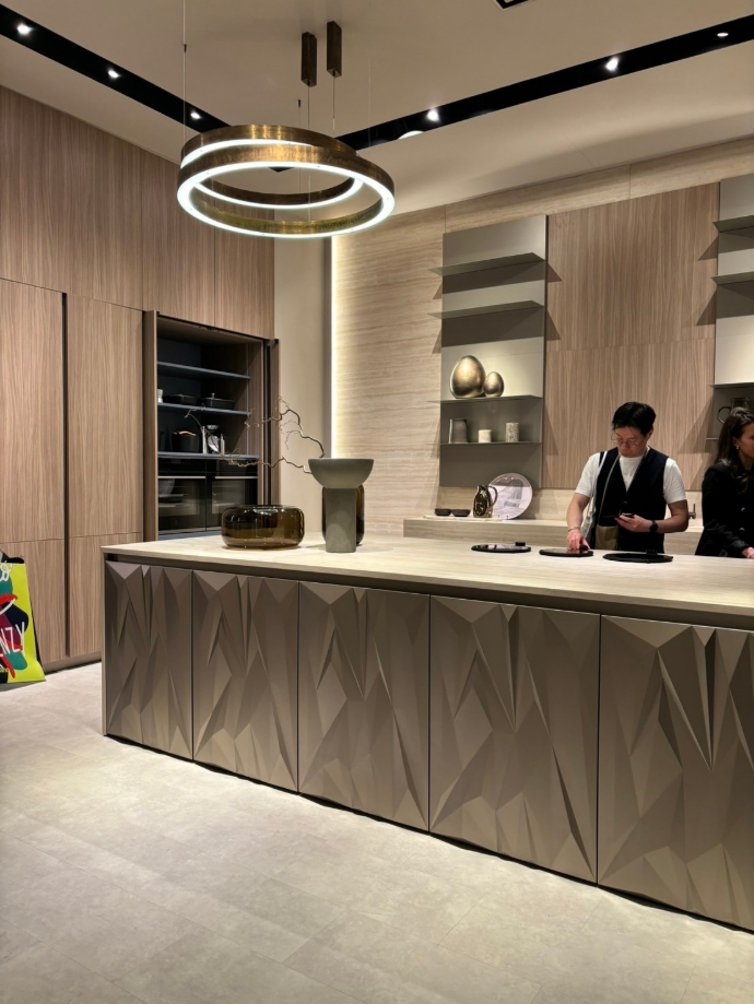 這次的米蘭展中,廚具設計展現了前所未有的細膩與創新。燈光運用成為空間語彙的重要元素,從線性條燈到隱藏式崁燈,設計師透過光影層次重新定義廚房的氛圍與情境。同時,材質表現更加多元,融合金屬、石材、木質與玻璃等異材質組合,跳脫以往單一構成的框架。色彩搭配上也更具層次與節奏,讓整體空間兼具機能美與藝術感,充分展現出設計師對細節與生活質感的深度思考與用心。