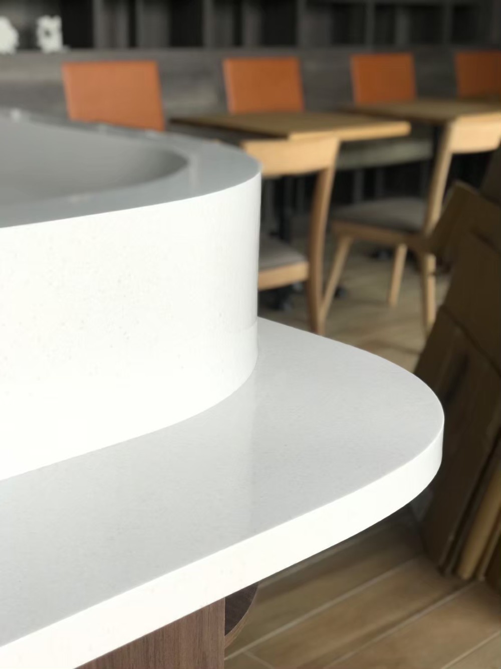此外,椅背的設計也融合了皮革元素,這是總裁長期專注於皮革包所賦予的獨特風格。到處都有精心的設置和安排,巧妙地將皮革融入設計,讓整體空間更具生動感和層次感。餐廳內部無論是設計還是每個細節的講究,都充分展現了總裁對品質與美學的追求,讓光臨到這裡的賓客都能感受到視覺與感官的雙重饗宴。