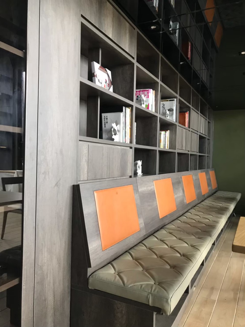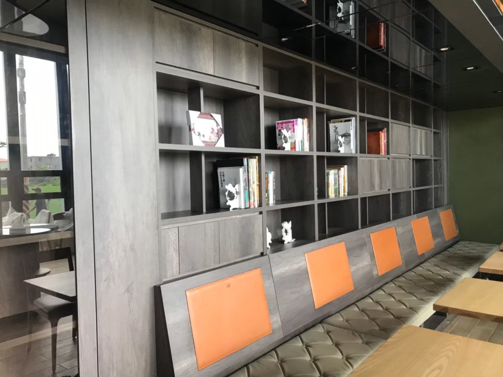 主題牆面結合書櫃的設計,成為餐廳內的一大亮點。不僅能夠擺放書籍,還能陳列珍藏品,將文化與藝術氣息帶入餐廳內,營造出濃厚的知識與品味氛圍。