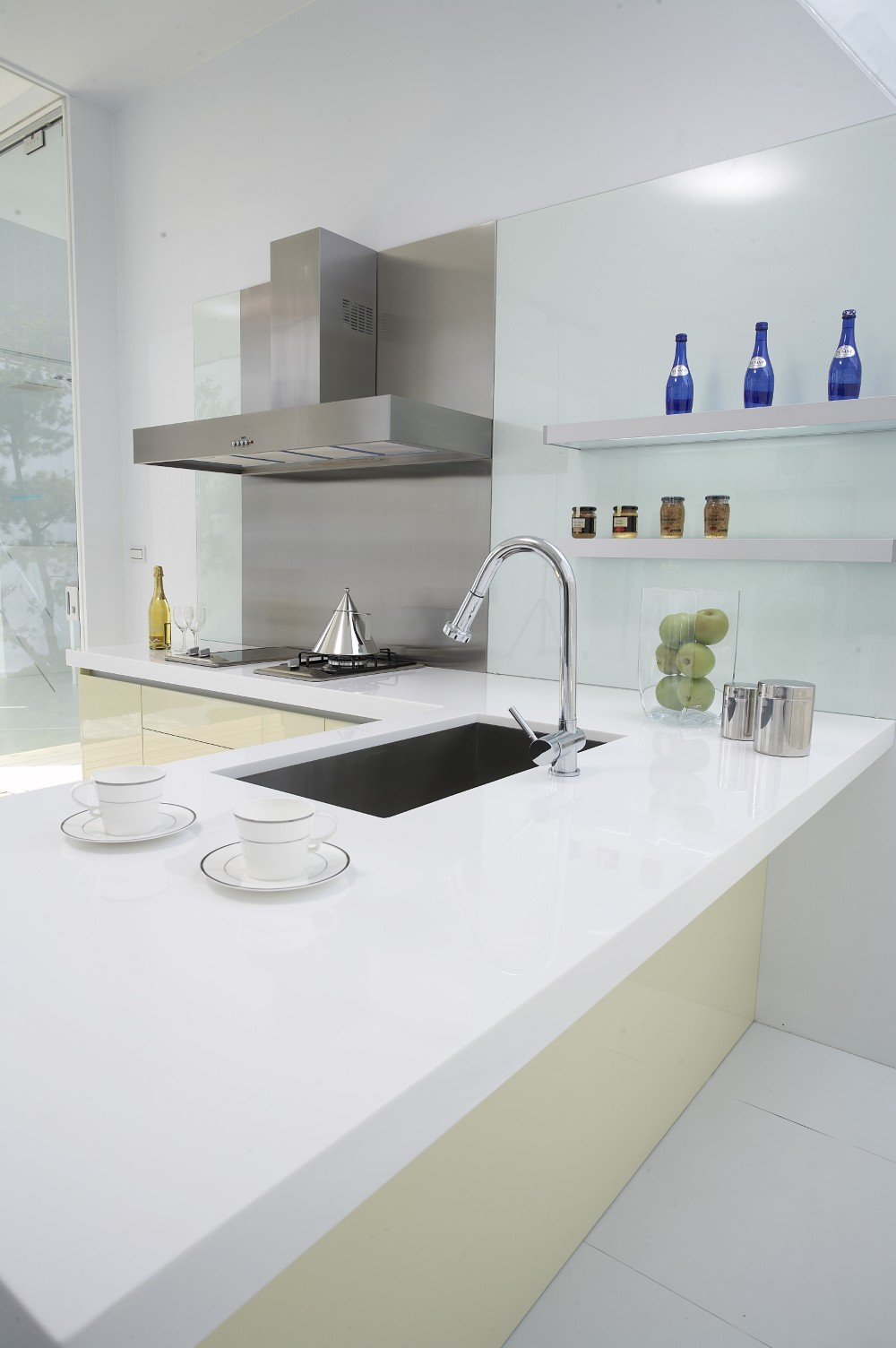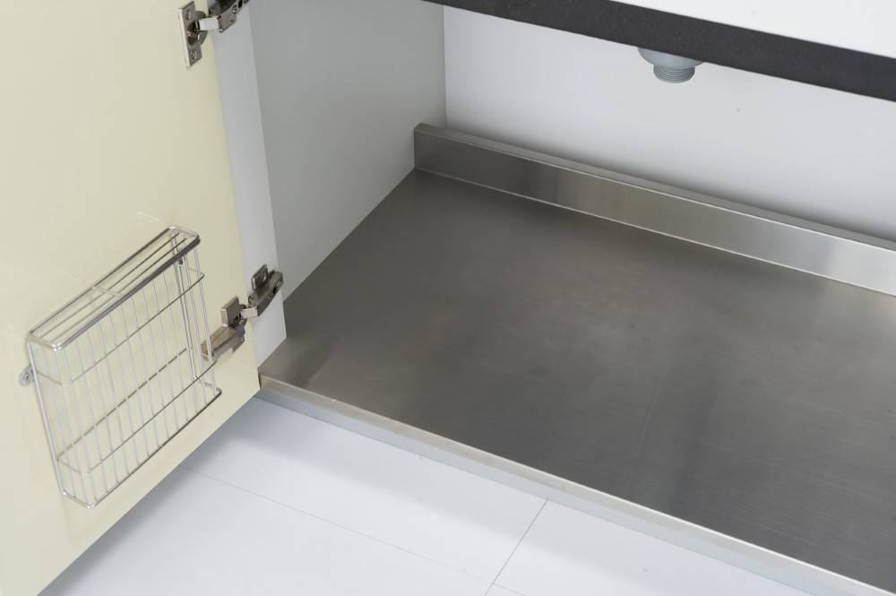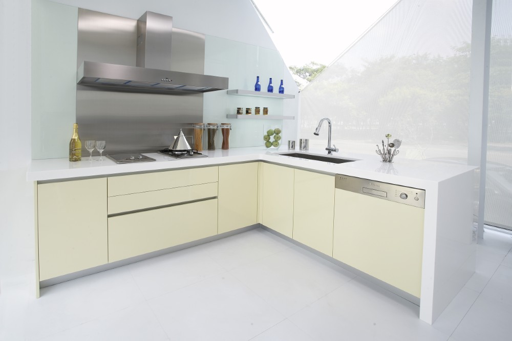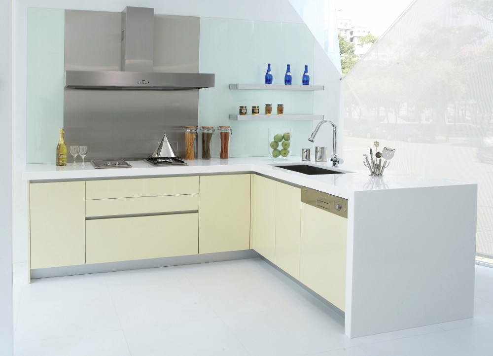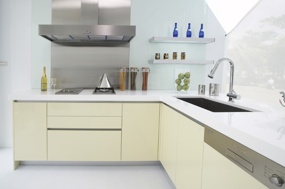 「黃色」有彩色中最亮的頭色,溫暖色調的黃色系門板,營造出明亮清新的輕盈氛圍,為廚房空間增添了幾分柔和與優雅。特別在排油煙機的位置,精心配置了不銹鋼板,既有效防止油煙滲透,又讓清潔工作變得更加便利,展現出對實用性的設計。