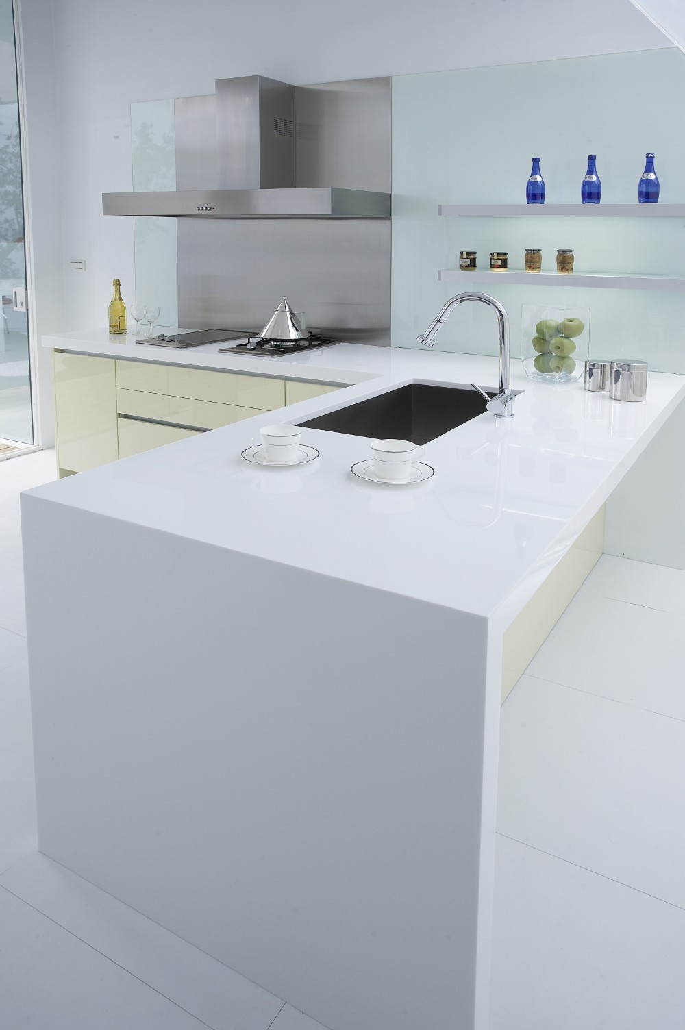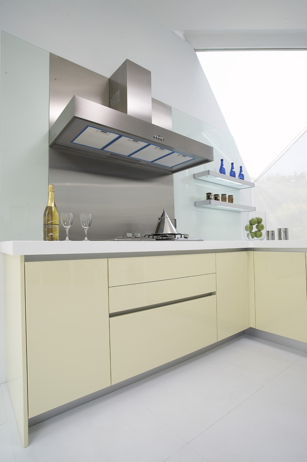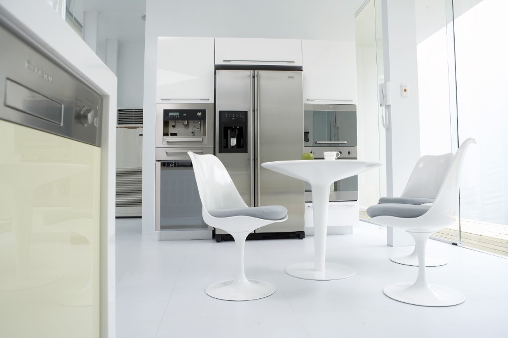 「黃色」有彩色中最亮的頭色,溫暖色調的黃色系門板,營造出明亮清新的輕盈氛圍,為廚房空間增添了幾分柔和與優雅。特別在排油煙機的位置,精心配置了不銹鋼板,既有效防止油煙滲透,又讓清潔工作變得更加便利,展現出對實用性的設計。