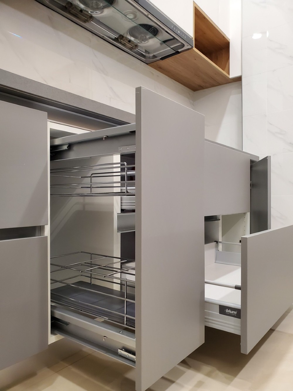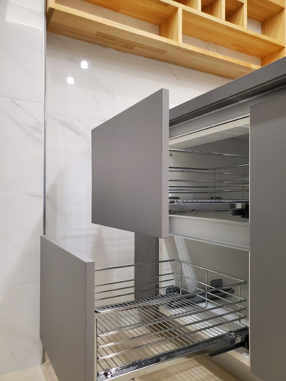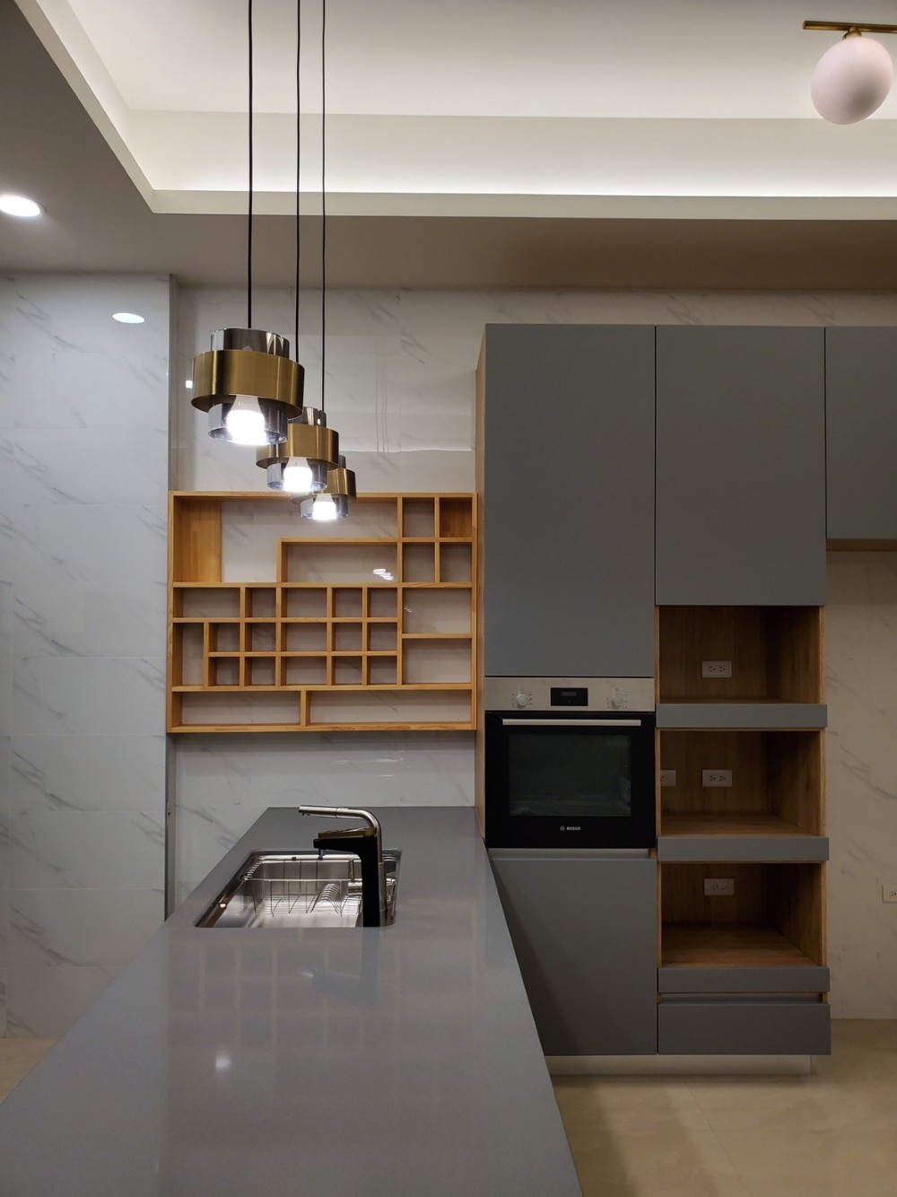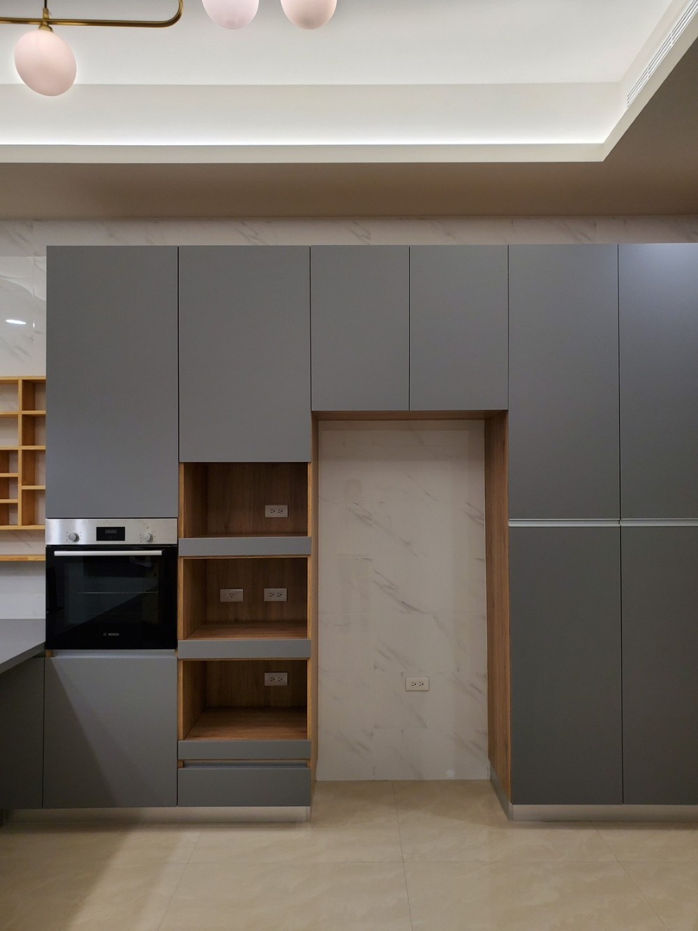 嚴選穩重且現代感十足的顏色,質感灰色系廚房簡潔大方。灰與白經典配色,打破沉穩色調的單調感,整體設計注重時尚簡約,讓視覺更俐落,廚房空間看起來更加寬敞舒適。