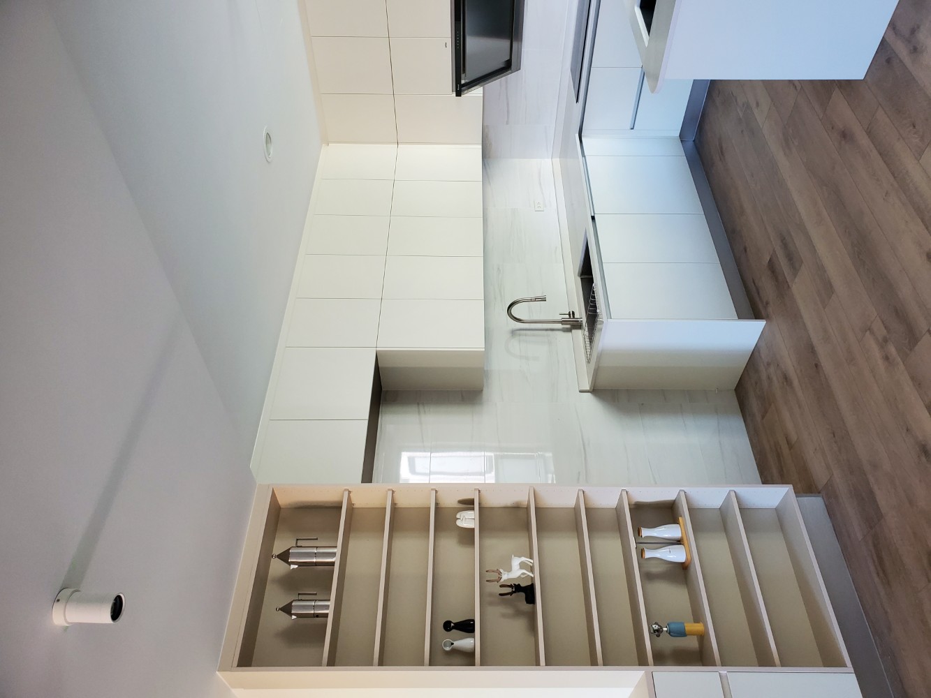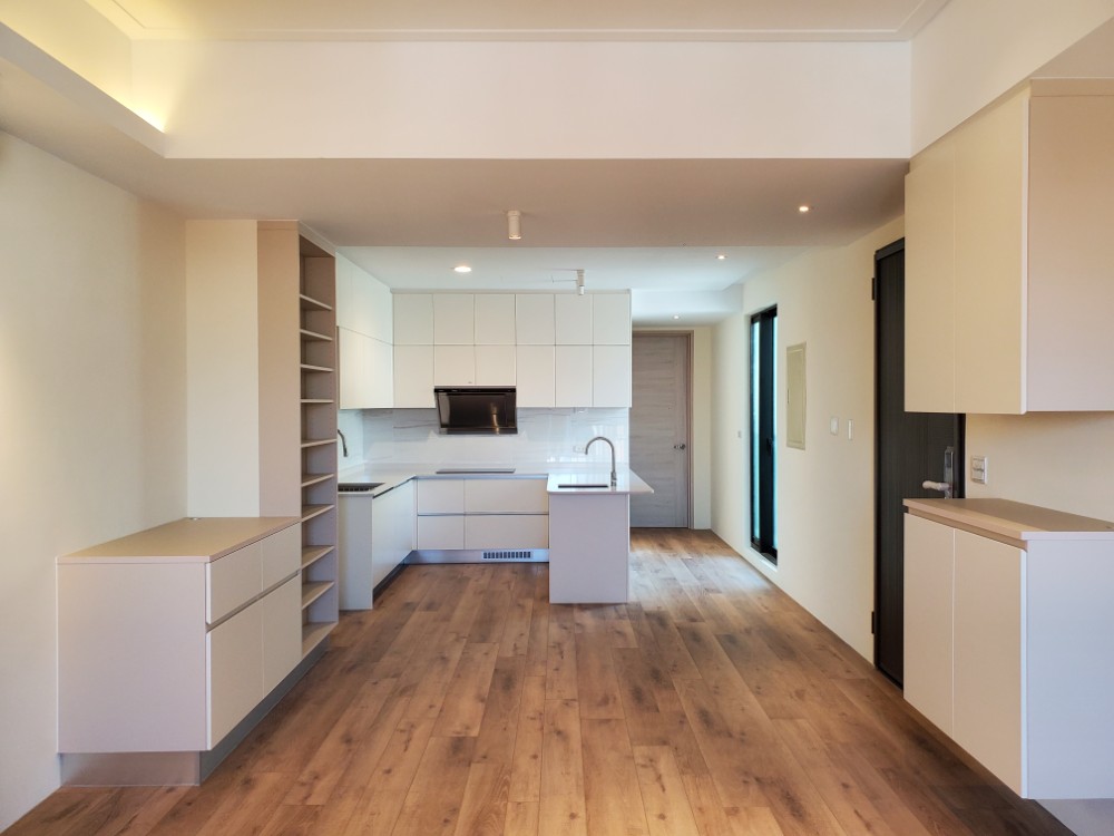 ㄇ型廚具在設計時充分考量了功能性與美學,配置兩個水槽,讓廚房料理上更加靈活便捷。整體設計提供了豐富的收納空間,無論是鍋具、餐具還是食材,都能輕鬆整理,保持廚房的整潔有序。