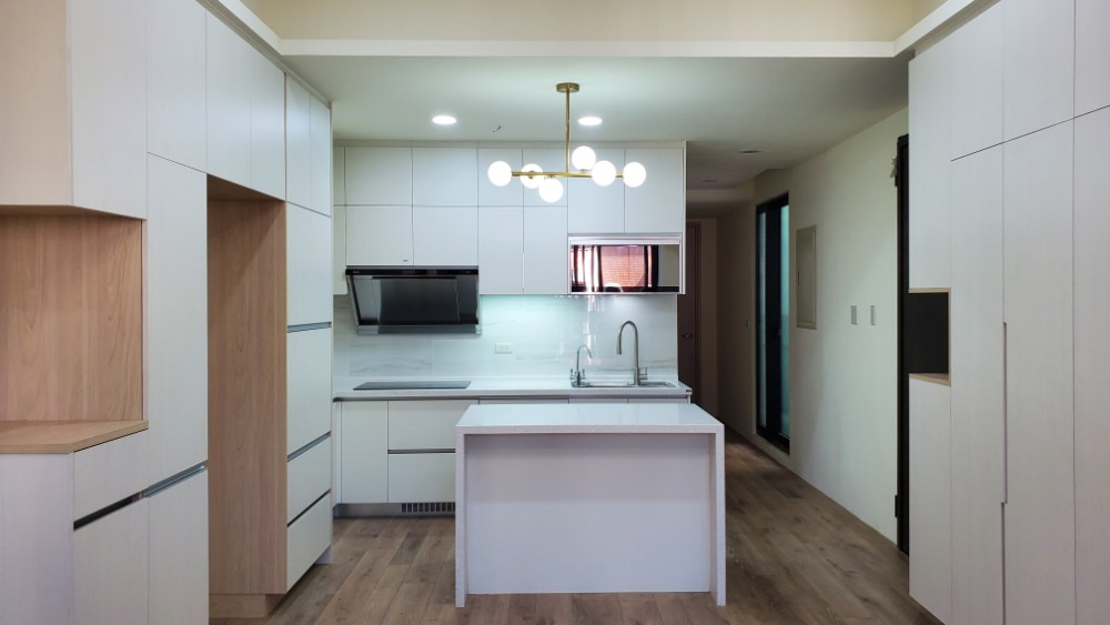 寬敞的中島,它不僅是烹飪的好幫手,也讓整個空間更具開放感。廚房與客廳相連,和家人可以隨時在這裡吃飯、聊天,藉由互動關係來增加彼此的了解。在這個廚房裡,有如沉浸在一個輕鬆愉快的氛圍中,無論是準備晚餐或是和家人共享美好時光,都感到特別的愜意。在這個空間裡,不僅能烹調美食,更能在繁忙的生活中找到一片放鬆的角落,讓每一天都充滿溫馨與快樂。
